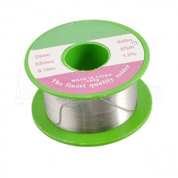 Припой-катушка c флюсом Применяется в радиопромышленности для лужения и пайки паяльником электро и радио аппаратуры. Состав: Sn (олово) — 63%, Pb (свинец) — 37%, Флюс 1.2% Восстановленный диаметр: 0.15in Диаметр припоя составляет 0.5 мм, вес: 35 г., температура плавления: 183 C